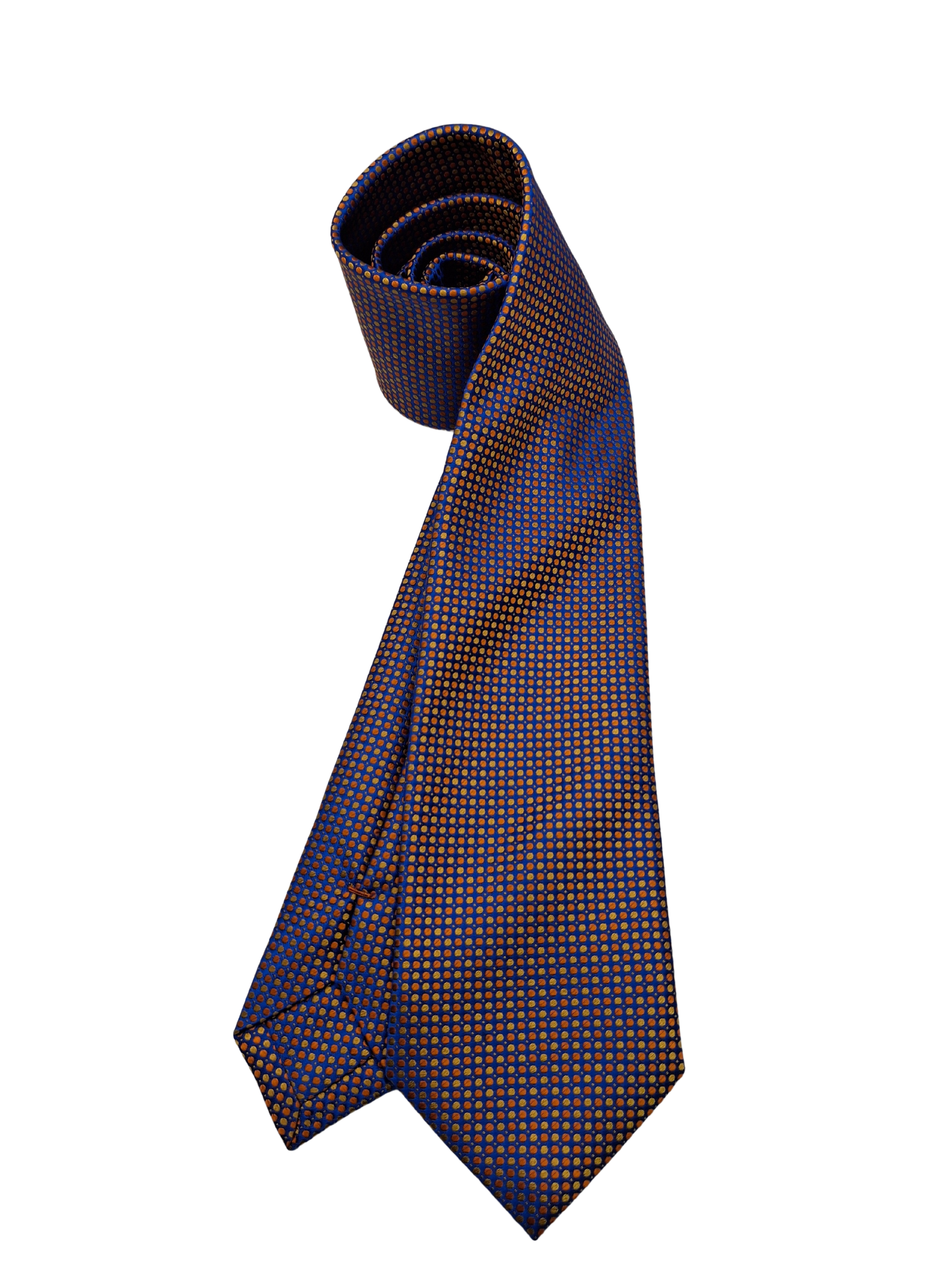 Navy Blue Orange Patterned Silk Tie Pure silk three fold tie. Handmade by our Italian tailors. 100% Pure silk. Our ties standard width is 8 cm (3.15 inch),  standard length is 150 cm (59 inch). | Sartoria Dei Duchi - Atri