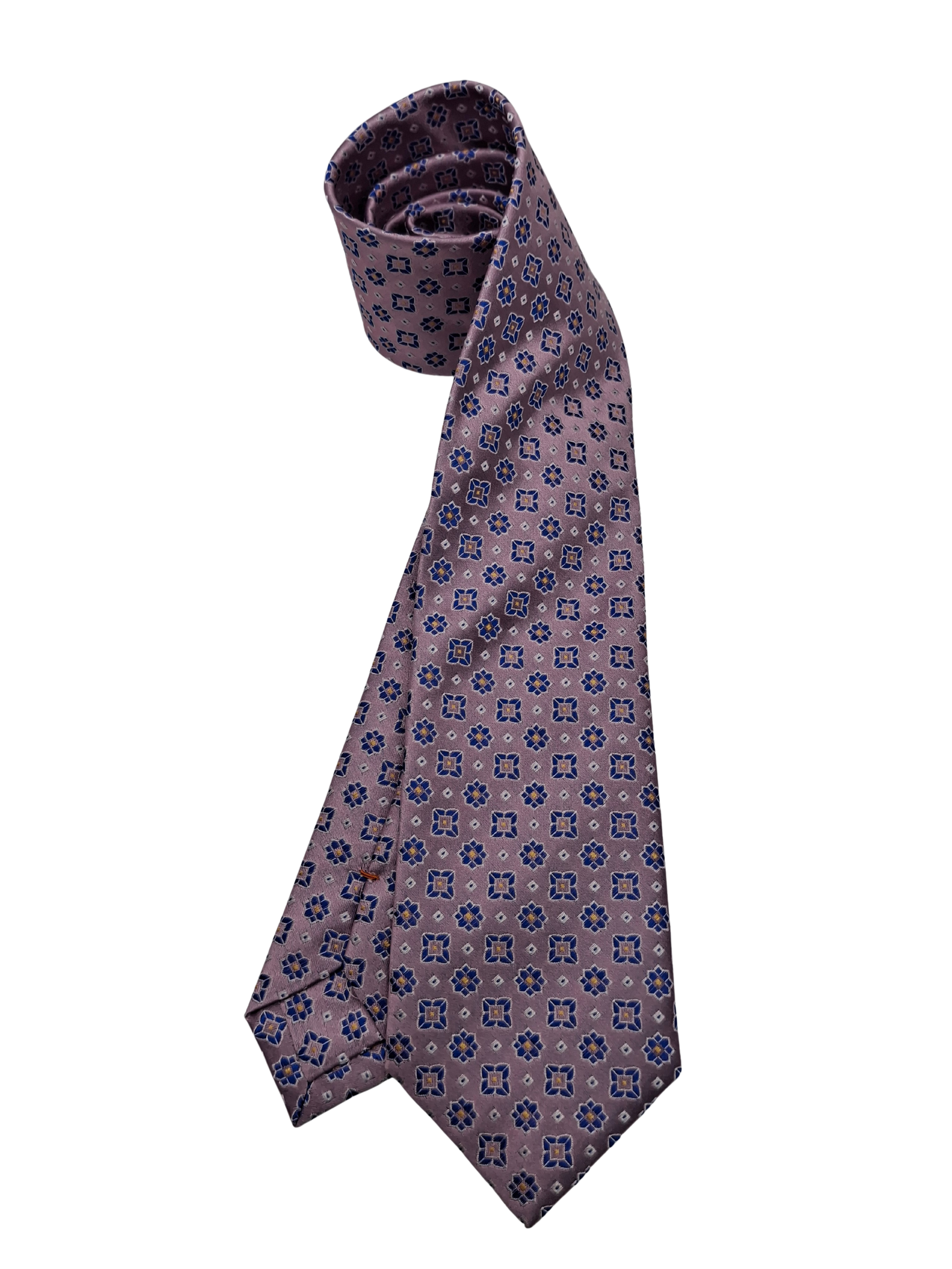 Purple Geometric Pieattern Silk Tie. Pure silk three fold tie. Handmade by our Italian tailors. 100% Pure silk. Our ties standard width is 8 cm (3.15 inch),  standard length is 150 cm (59 inch). | Sartoria Dei Duchi - Atri