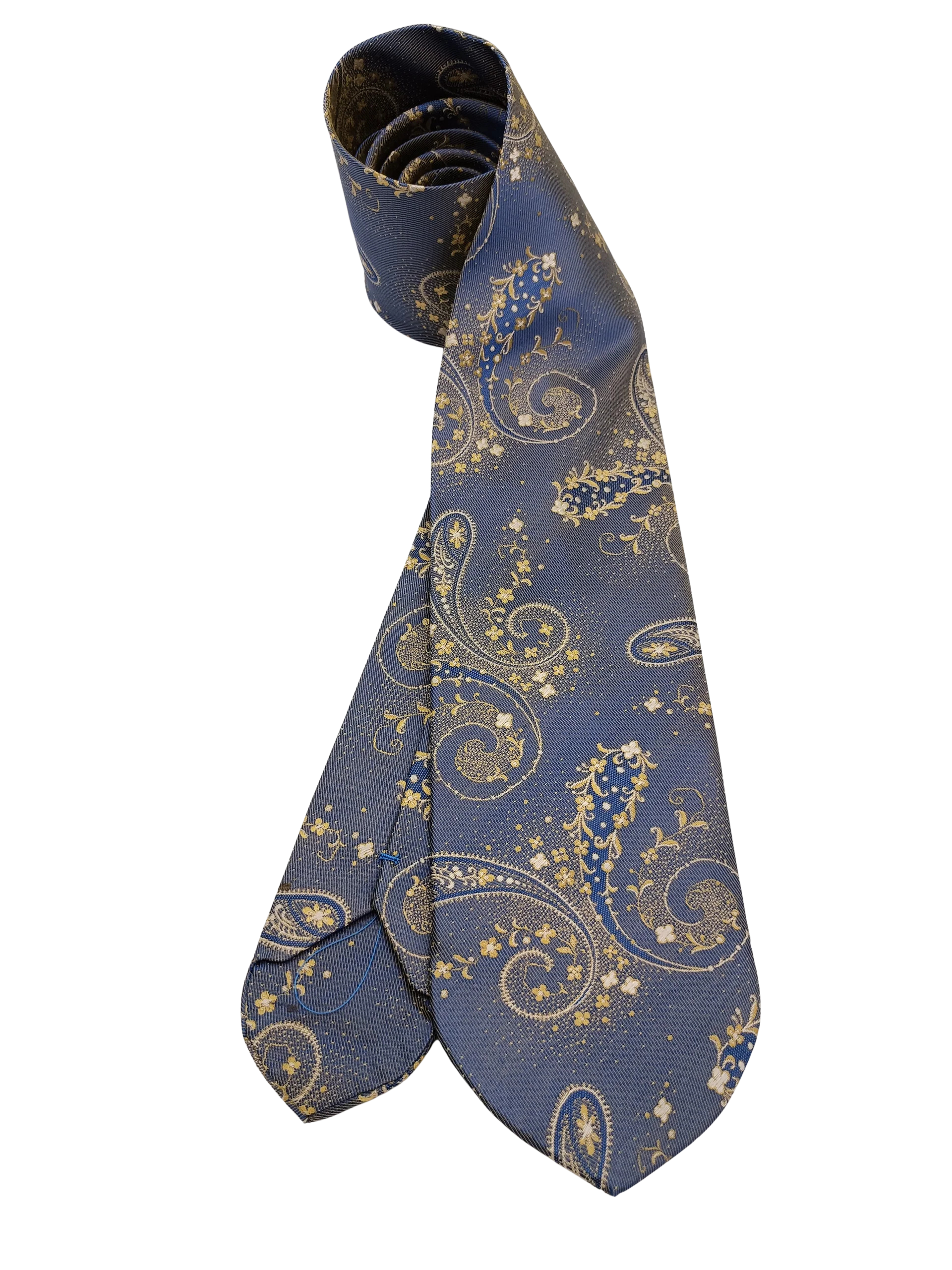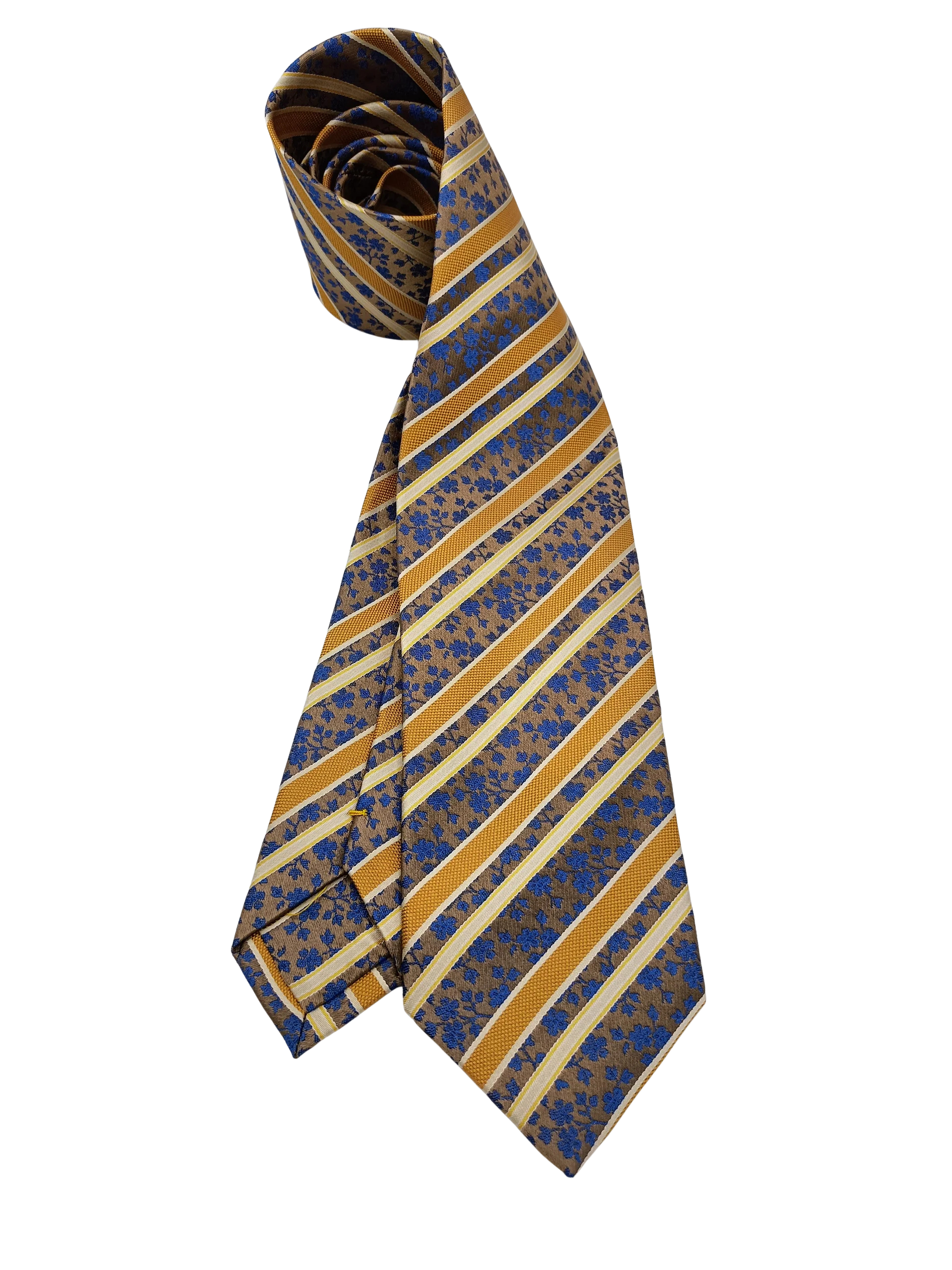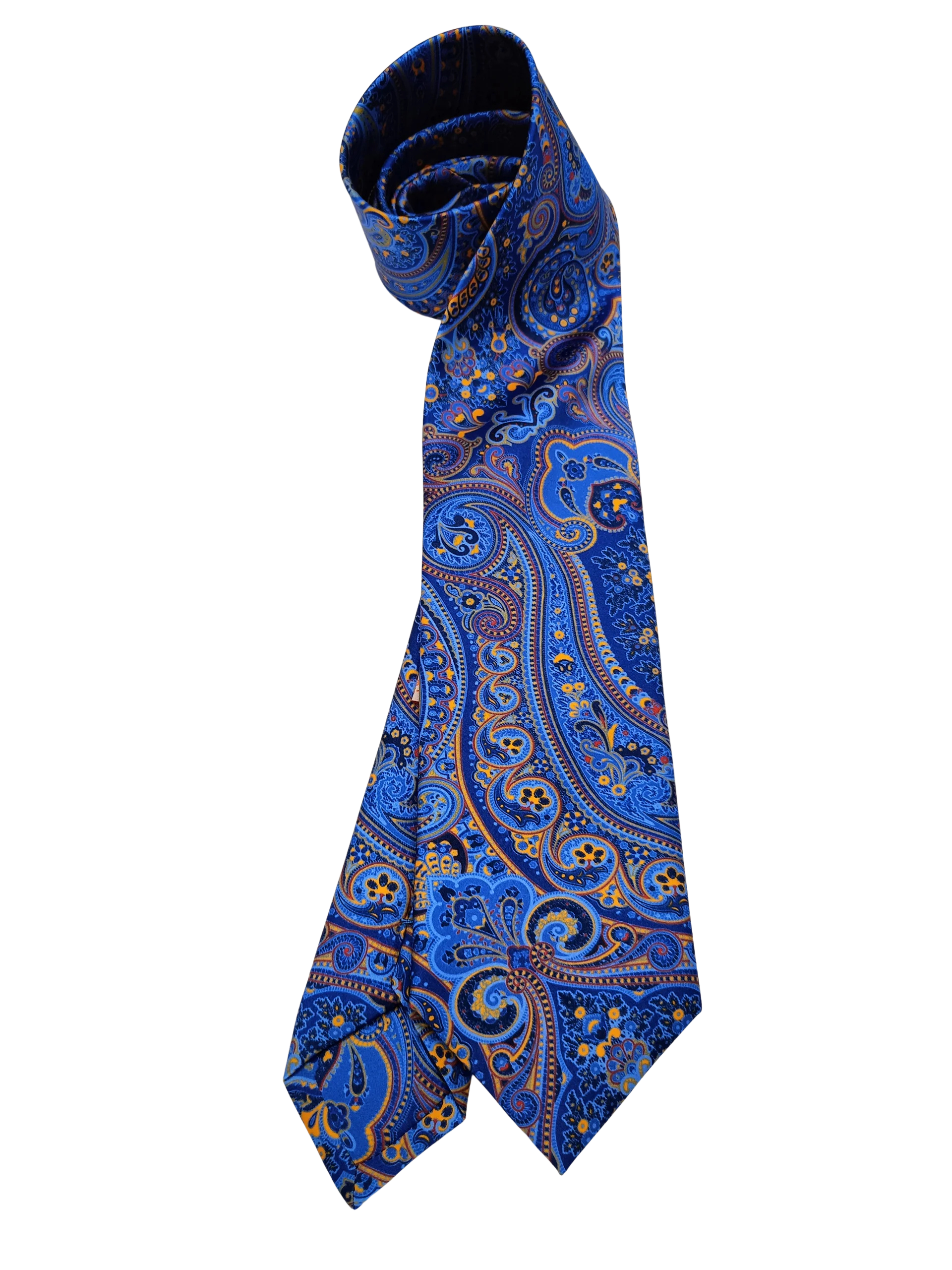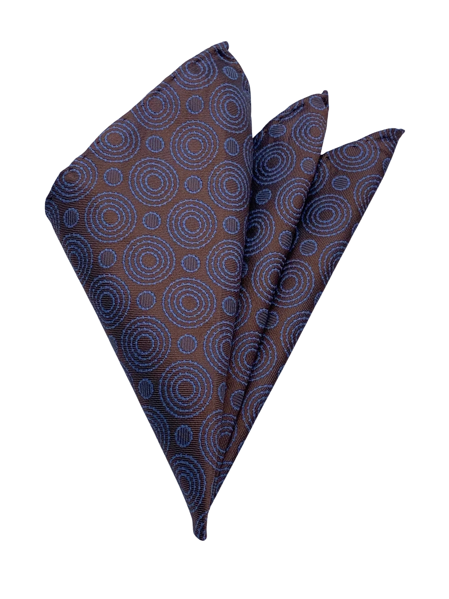 Golden Bronze & Blue Circles Silk Pocket Square.